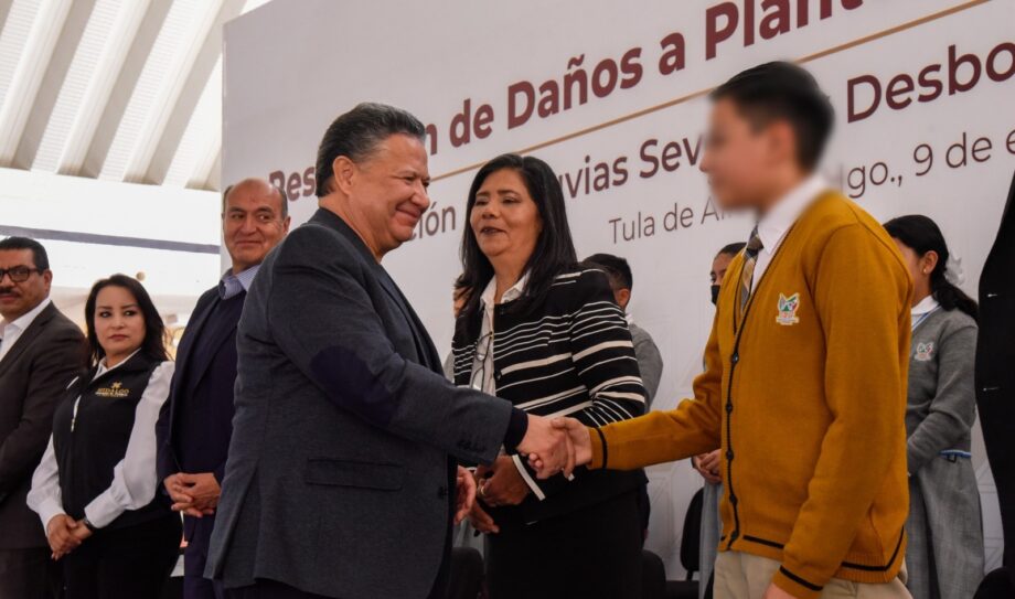 Con inversión de 65 millones de pesos, el gobernador de Hidalgo, Julio Menchaca Salazar, realizó la entrega simbólica de material y mobiliario a 22 escuelas de educación básica, media superior y superior que sufrieron afectaciones tras el desbordamiento del Río Tula, en septiembre del 2021.
