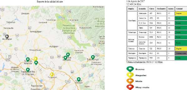 Ni Tizayuca ni Atitalaquia son buenos puntos de la geografía hidalguense para respirar sin preocupaciones, ya que la Secretaría de Medio Ambiente y Recursos Naturales reporta una regular calidad del aire; esto quiere decir que las personas sensibles podrían presentar molestias. El resto de los hidalguenses pueden estar seguros de que respiran aire limpio.