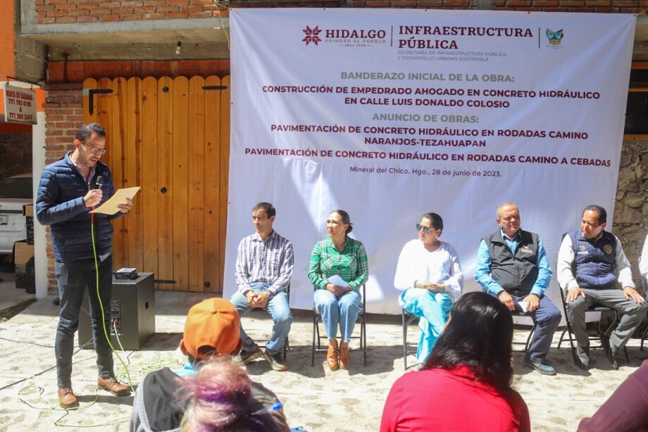 En presencia del alcalde anfitrión, Alfredo Hernández; la diputada local Erika Rodríguez; Eduardo Bernal, presidente del Comité Ciudadano de la cabecera municipal; Alberto Salinas Álvarez, presidente del Comité Ciudadano de Pueblos Mágicos; y Rafael Islas Borbolla, director del Parque Nacional El Chico; dieron el banderazo de inicio a la construcción del empedrado ahogado en concreto hidráulico en la calle Luis Donaldo Colosio.
