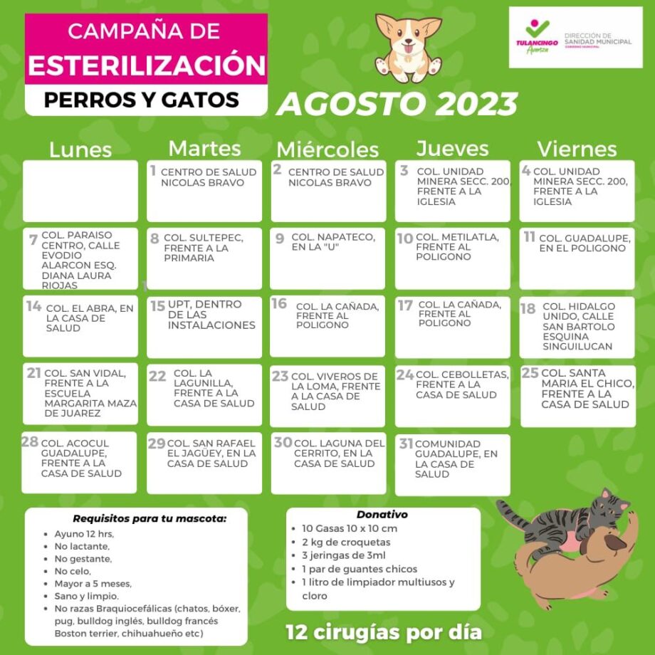 La Dirección de Sanidad de la Presidencia Municipal de Tulancingo dio inicio a la campaña de esterilización para perros y gatos, correspondiente al mes de agosto.