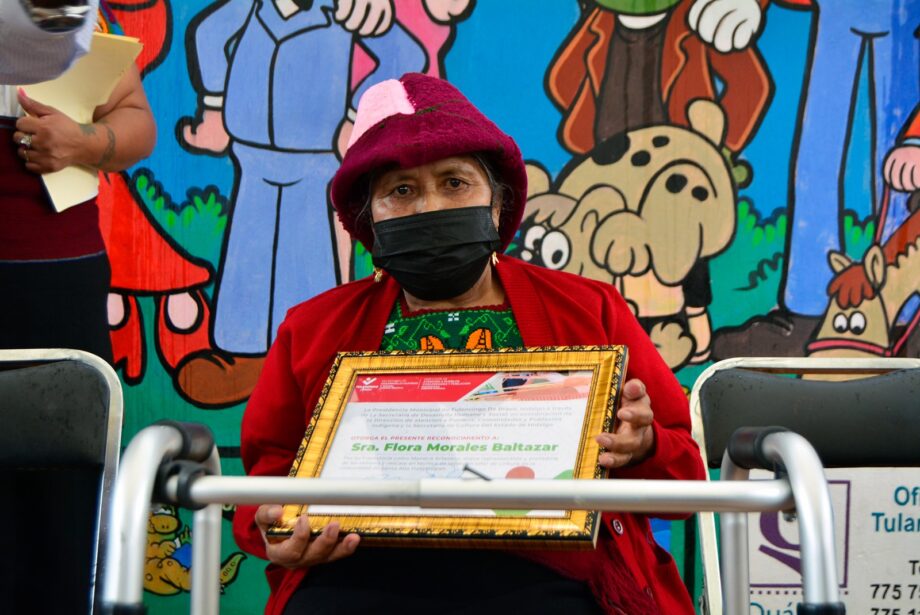 La reconocida artesana de Santa Ana Hueytlalpan, Flora Morales Baltazar, fue homenajeada el pasado viernes por el Gobierno de Tulancingo que encabeza el presidente Jorge Márquez Alvarado, en reconocimiento a su amplia trayectoria como artista y como promotora y custodia de la técnica del telar de cintura.