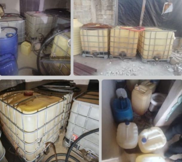 Durante la intervención, los cuerpos de seguridad localizaron 93 dosis de hierba verde con características de marihuana y 43 dosis de sustancia cristalina similar a cristal. También fue asegurada una camioneta con reporte de robo, junto con 15 contenedores plásticos con distintas capacidades que almacenaban en conjunto 5 mil 170 litros de hidrocarburo.