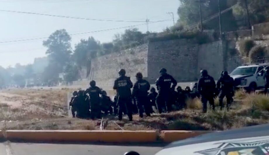 Para la intervención se movilizaron más de 450 elementos estatales con equipo antimotines, escudos y protección personal —sin portar armas de fuego— además de 104 patrullas, 7 ambulancias y 7 grúas.