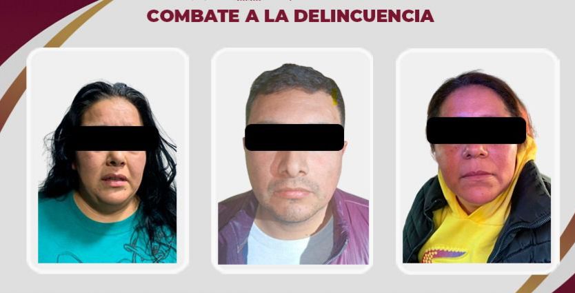 En el lugar fueron detenidas tres personas: dos mujeres y un hombre identificados con las iniciales A.G.O.G., G.F.G.G. y C.S.C., presuntamente relacionadas con actividades de narcomenudeo.