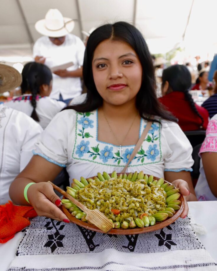 En esta ocasión, la Muestra Gastronómica de Santiago de Anaya celebra su edición número 45, reuniendo a mil 340 cocineras y cocineros tradicionales que exhiben una amplia variedad de platillos elaborados con ingredientes regionales como guajolote, pescado, nopales, escamoles, xamues y codorniz, reflejo de la riqueza culinaria del Valle del Mezquital.