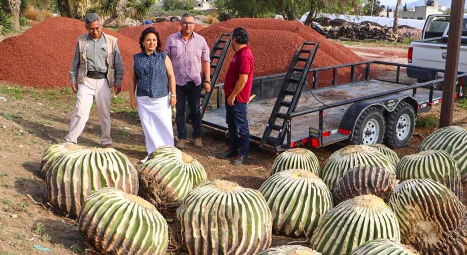 Ejemplares de biznaga asegurados en San Salvador, especie protegida por la NOM-059, fueron trasladados al Parque Ecológico Cubitos, donde reciben atención especializada para su recuperación y conservación.