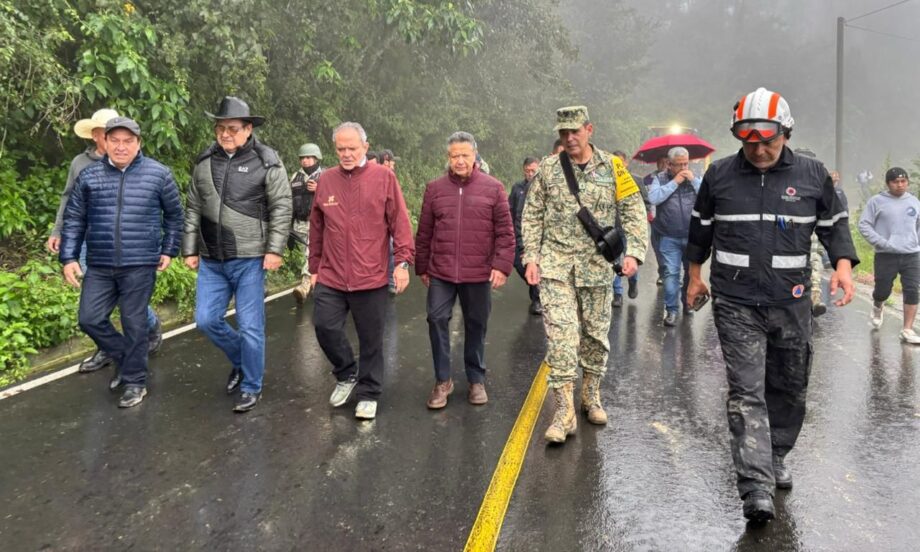 El mandatario estatal encabezó labores de supervisión y coordinación interinstitucional en Tianguistengo. Las autoridades reportan la comunicación restablecida en siete vialidades de estado y de manera parcial en 32 más.