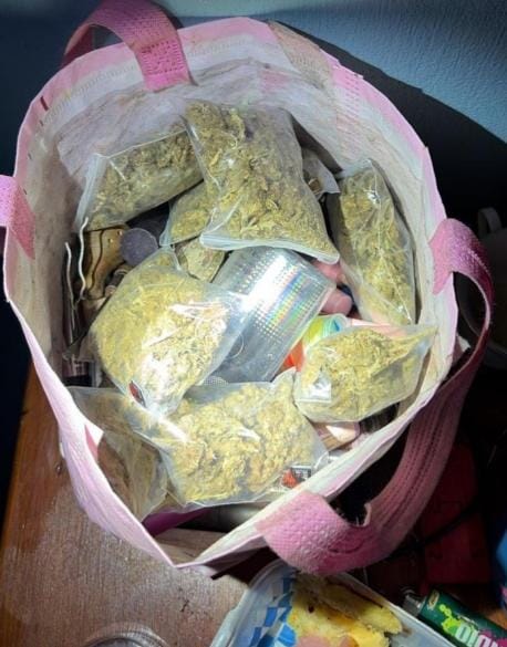 Durante la intervención ministerial fueron aseguradas bolsas con material sólido cristalino blanco, contenido botánico seco, bolsas plásticas con polvo blanco, así como una camioneta GMC con placas de la Ciudad de México.