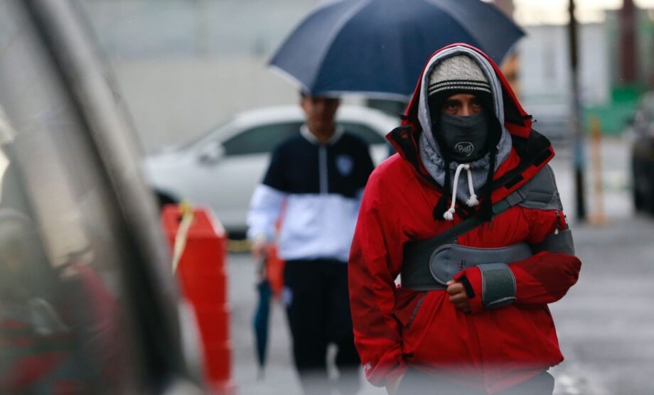 Taparse boca y vías respiratorias para evitar enfermarse por la contaminación estancada por la intensa baja de temperatura."