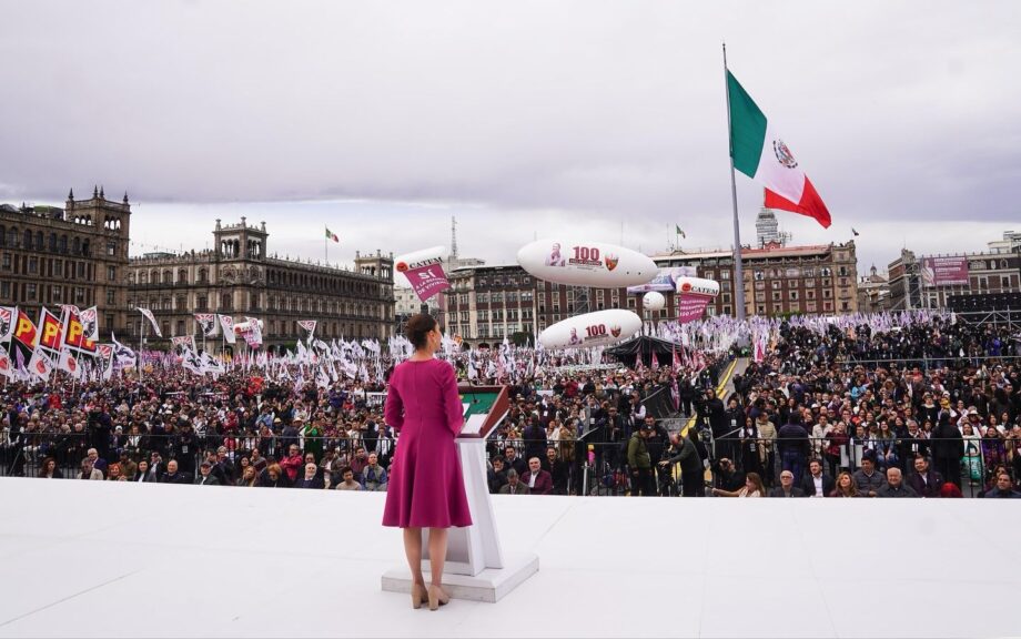 Durante su pronunciamiento en el Zócalo de la Ciudad de México, la presidenta se enfocó en los migrantes y la relación entre México y Estados Unidos, en el contexto previo a la toma de protesta de Donald Trump, quien había anunciado deportaciones masivas de mexicanos y el aumento de aranceles a productos provenientes de México.