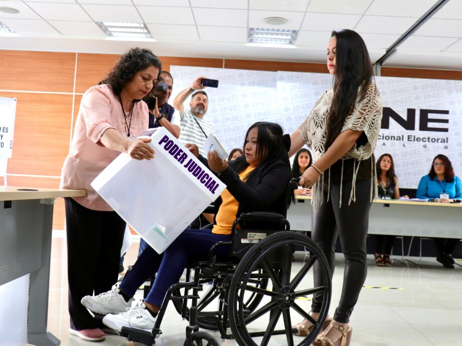 A una semana de que se realice la primera elección del Poder Judicial federal, la Junta Local Ejecutiva del Instituto Nacional Electoral (INE) en Hidalgo llevó a cabo un ejercicio de votación donde se simularon diversas situaciones, como la participación de personas con discapacidad, embarazadas y ciudadanos con movilidad reducida.