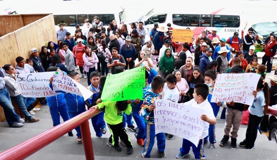 Con violencia, buscan despojar a primaria de campo deportivo; protestan en Pachuca