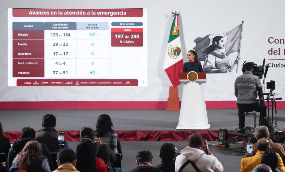 Finalmente, Sheinbaum anunció que este jueves visitará Veracruz y Puebla, y mañana viernes 24 de octubre regresará a Pachuca para encabezar una reunión privada de evaluación de daños en el aeropuerto “Juan Guillermo Villasana”, alrededor de las 14:00 horas, aunque el horario podría modificarse.