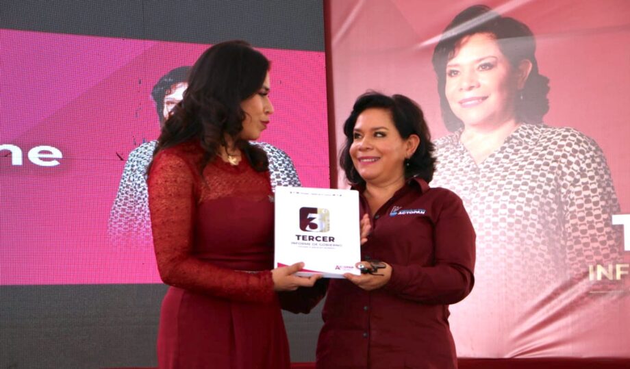La presidenta municipal de Actopan, Tatiana Ángeles Moreno, realizó la entrega de su Tercer Informe de Gobierno a la secretaria de Bienestar e Inclusión Social de Hidalgo, Simey Olvera, en representación del gobernador Julio Menchaca.