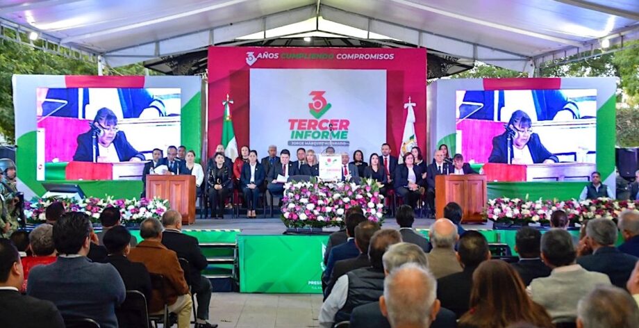 El presidente municipal de Tulancingo, Jorge Márquez Alvarado, dio cumplimiento a su obligación constitucional al entregar y rendir su Tercer Informe de Gobierno. En esta ocasión desde la velaría del Jardín La Floresta, lugar declarado como recinto oficial de este acto.