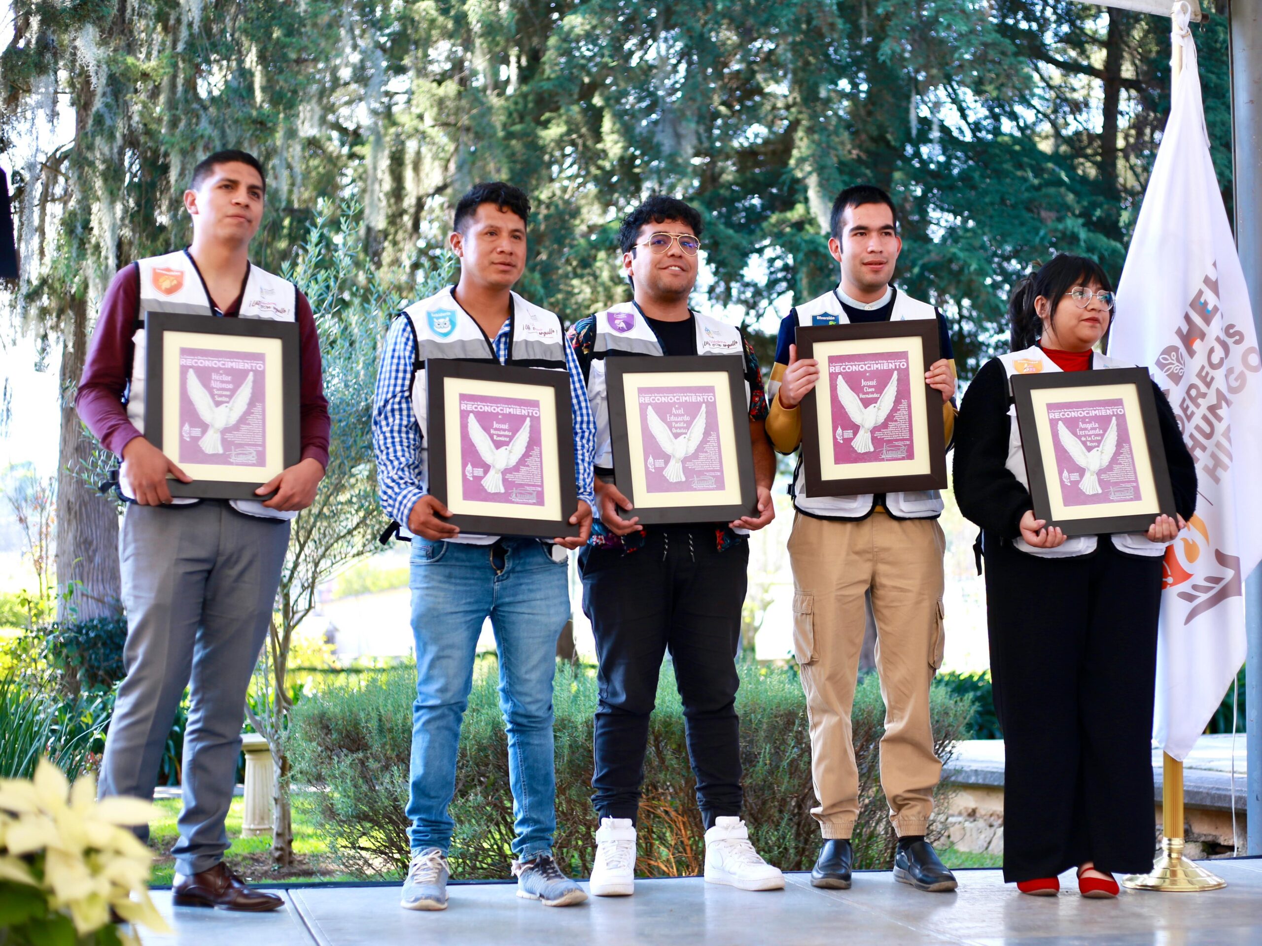 Otorgaron galardón a integrantes del voluntariado “Late con Orgullo”, así como menciones honoríficas para Gerardo Romero García, la presidencia del Sistema DIF Municipal de Huasca de Ocampo y la Universidad Digital del Estado de Hidalgo, por la primera generación de alumnos de la licenciatura en Gestión Empresarial y Administración, cuya particularidad es que todos sus integrantes tienen alguna discapacidad visual.