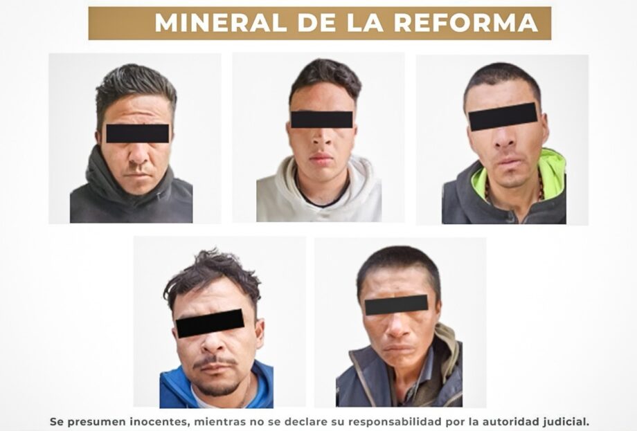 En tanto, en la colonia Militar de Mineral de la Reforma se logró desarticular un supuesto grupo delictivo relacionado con actividades de narcomenudeo, por lo que fueron puestos a disposición de la autoridad competente cinco individuos identificados como J.A.E., E.M.E., A.M.B., C.D.S.R. y G.D.M.G., al igual que lo decomisado.