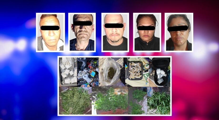 Un operativo permitió desarticular dos presuntos puntos de venta de droga en Pachuca, con un saldo de cinco detenidos, más de 400 dosis de narcóticos aseguradas y un arma de fuego.