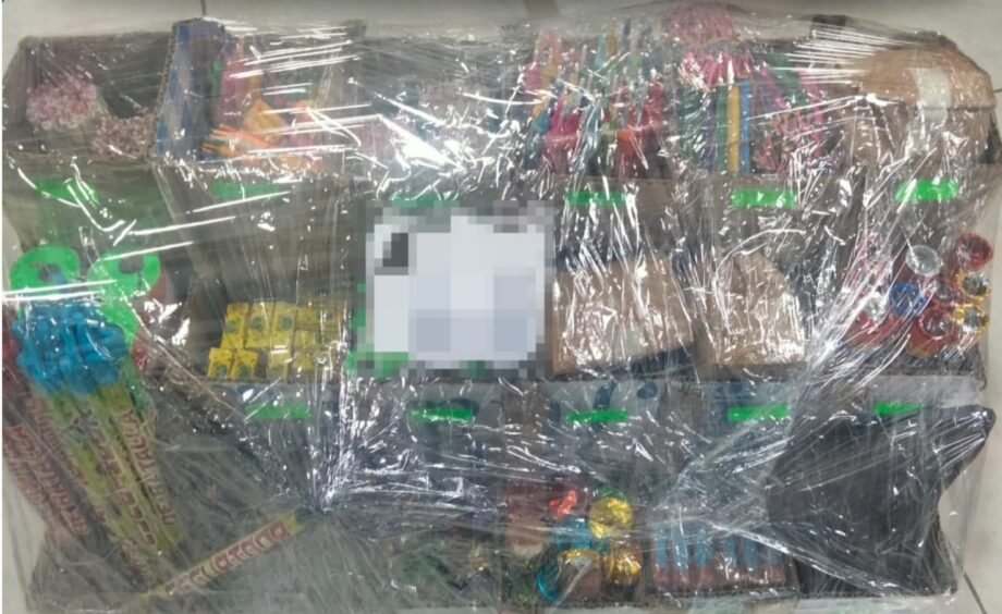 Sobre recorrido en esta colonia, la Policía local atendió el reporte de un vehículo Chevy, color blanco, que transportaba pirotecnia, por lo que fue intervenido y se le realizó una inspección que dio como resultado la localización de varias cajas con pirotecnia.