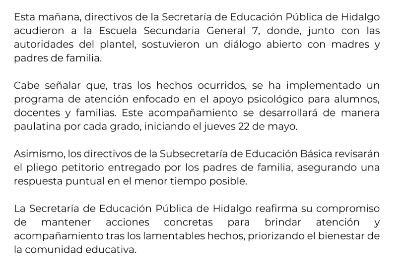 Directivos de la SEPH dialogaron con madres y padres de familia de la Secundaria General 7 de Pachuca