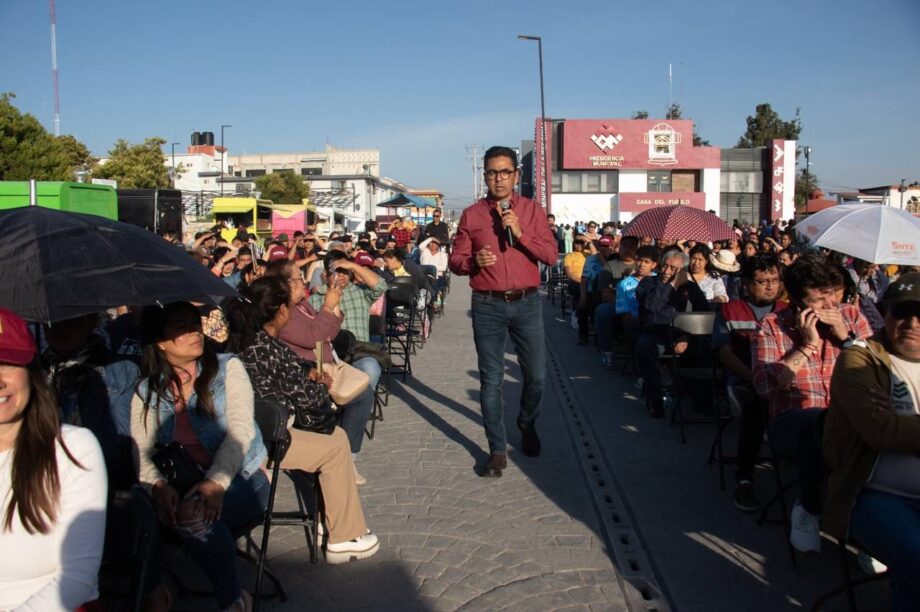 El evento protocolario tuvo lugar en la explanada principal de Pachuquilla y contó con una amplia convocatoria. Durante su intervención, el dirigente de Morena Hidalgo, Marco Antonio Rico Mercado, llamó a la unidad y destacó el trabajo del edil.