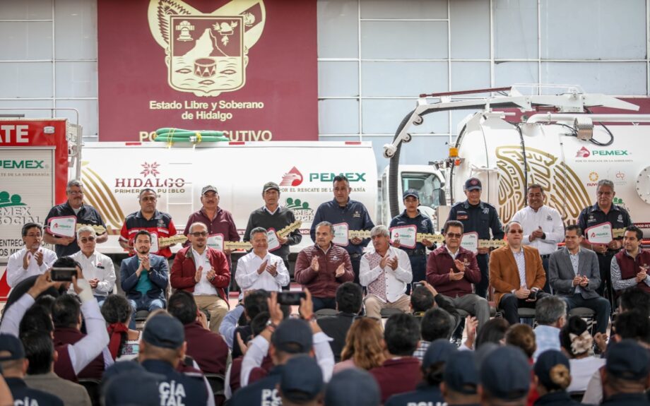Petróleos Mexicanos (Pemex) realizó este fin de semana una nueva entrega de equipos y vehículos de emergencia al estado de Hidalgo, con los que ya suman 790 millones de pesos en apoyos que se han otorgado a la entidad durante el gobierno de Andrés Manuel López Obrador (AMLO).