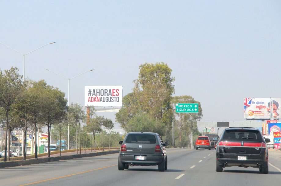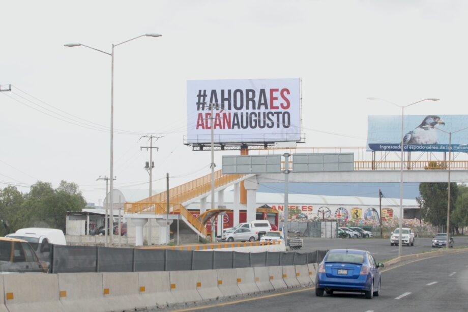 Y mientras que en la carretera federal México-Laredo, en el tramo Actopan-Ixmiquilpan, destacan las bardas y espectaculares #MarceloSí, en apoyo a Marcelo Ebrard, actual canciller; en la carretera México-Tuxpan, a la altura de Tulancingo, los espectaculares con mayor presencia son #AhoraesAdanAugusto, en promoción de Adán Augusto López, secretario de Gobernación.