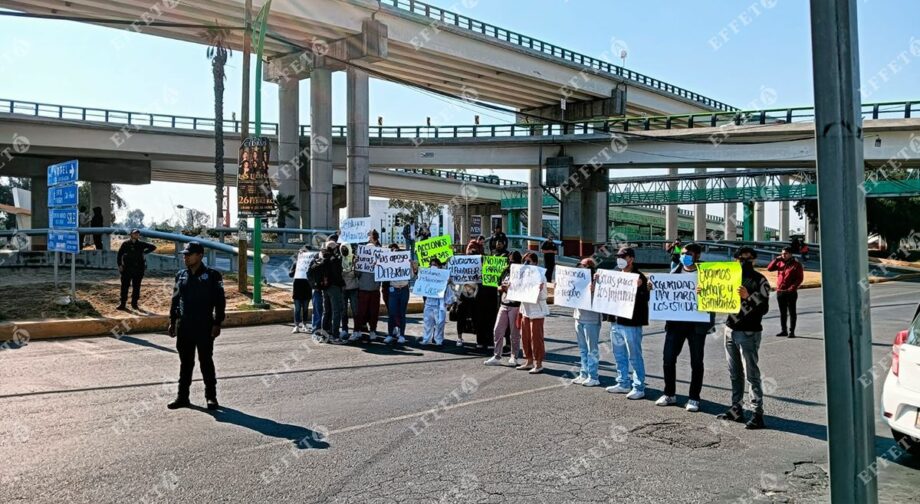 Pasadas las 10 de la mañana, los alumnos que se encontraban manifestándose en el Centro de Formación, Innovación e Investigación Médica (CFIM) en Pachuca, bloquearon los carriles de circulación laterales del bulevar Felipe Ángeles, frente al centro comercial Galerías.