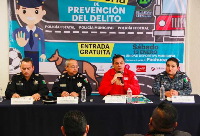 La Policía Federal, la Secretaría de Seguridad Pública de Hidalgo y la Policía Municipal de Pachuca colaboran para realizar la primera Feria de Prevención del Delito, que se llevará a cabo el próximo sábado 13 de enero en la Unidad Deportiva Municipal de la capital del estado.