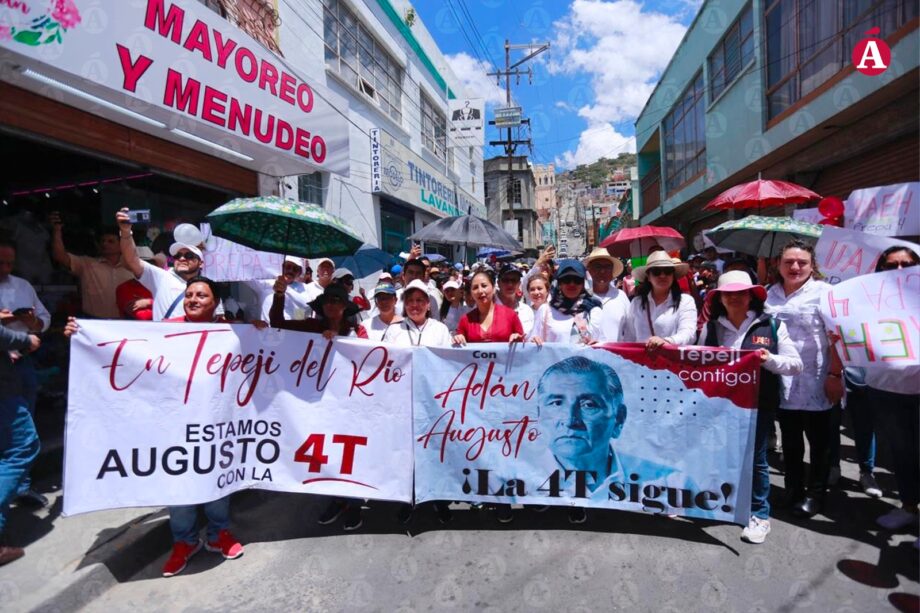 Cerca de 3 mil estudiantes y académicos de la UAEH arribaron a la sede de Abasolo para recibir al ex secretario de Gobernación federal y aspirante a coordinador nacional de los Comités de Defensa de la Cuarta Transformación.
