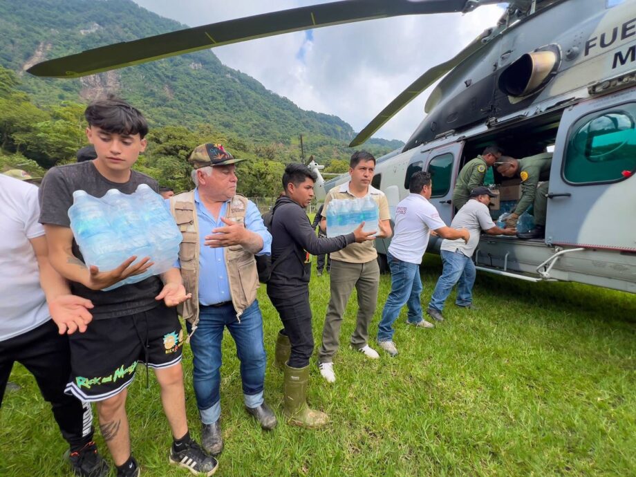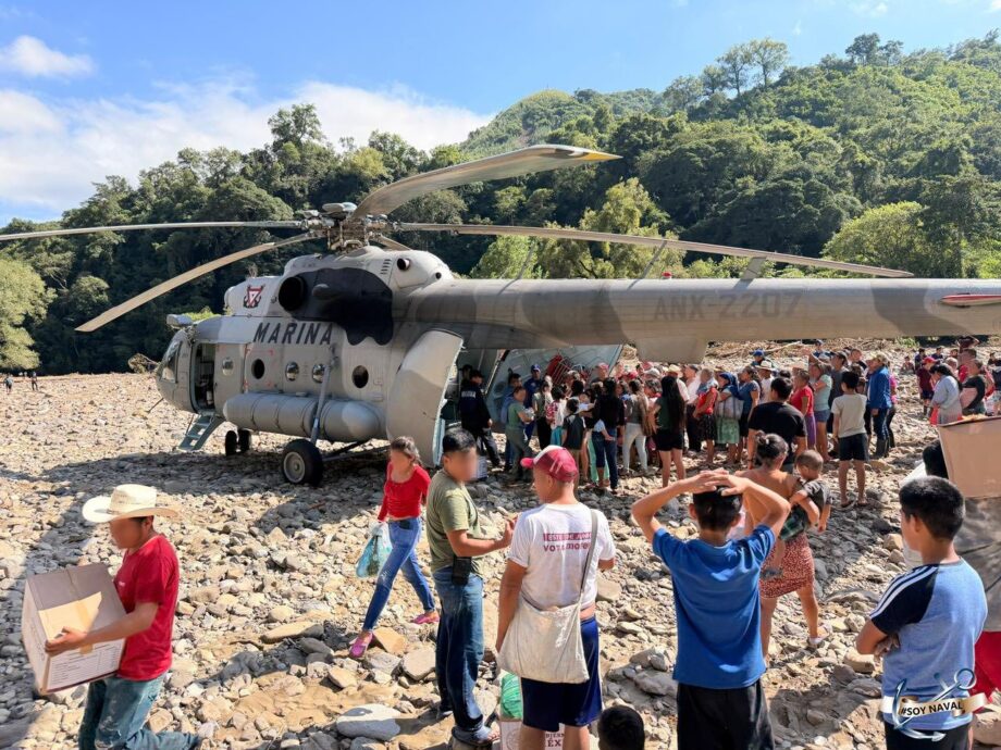 Sheinbaum explicó que tras su visita a la entidad se determinó reforzar el puente aéreo con 19 helicópteros para garantizar el envío de víveres, agua y apoyo médico a las zonas más afectadas, muchas de ellas comunidades pequeñas incomunicadas por el colapso de caminos y puentes.