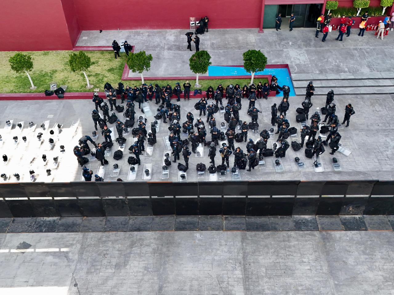 En la explanada de Plaza Juárez, un grupo de policías aguardaba a las manifestantes; sin embargo, al pasar los minutos, comenzaron a bajar cascos y escudos. Finalmente se retiraron al no registrarse protestas en esa zona.