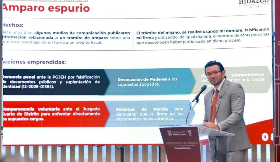 Tello Vargas explicó que, desde que el Despacho del Gobernador tuvo conocimiento del caso, se actuó de manera inmediata para revocar los poderes otorgados de forma fraudulenta ante el juzgado federal y para iniciar las denuncias penales correspondientes ante la Procuraduría General de Justicia de Hidalgo.