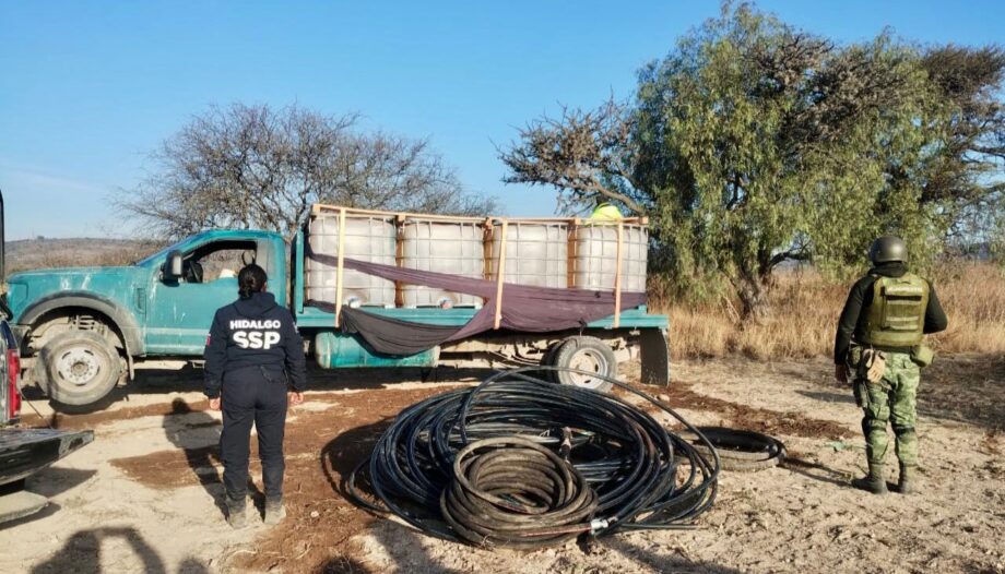 Derivado de acciones encaminadas a combatir la incidencia delictiva en materia de robo de hidrocarburo, agentes de la Secretaría de Seguridad Pública de Hidalgo llevaron a cabo el aseguramiento de 8 mil litros de combustible y la recuperación de un vehículo.