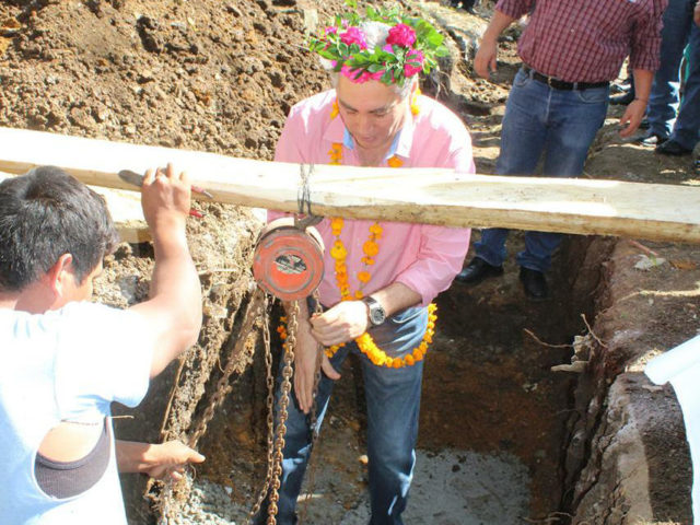 Raúl Badillo Ramírez, alcalde de Huejutla, colocó la primera piedra de la construcción de la unidad médica rural de la localidad de Coacuilco y dio el banderazo de inicio de la obra de pavimentación hidráulica en Pitzontzintla, durante una gira de trabajo.