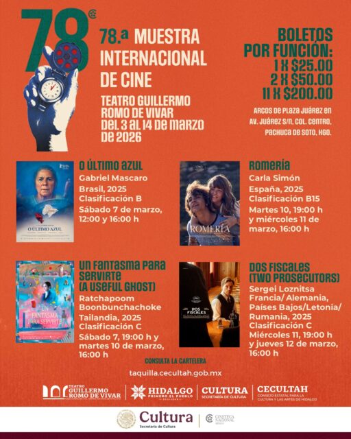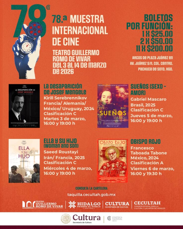 El costo del boleto por función es de 25 pesos, mientras que el abono para toda la muestra tiene un precio de 200 pesos, una oportunidad accesible para disfrutar cine internacional de primer nivel en Pachuca.