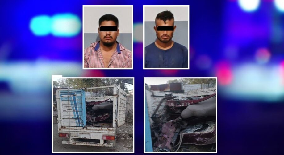 Dos hombres fueron detenidos en flagrancia por elementos de la Secretaría de Seguridad Pública de Hidalgo en Huejutla, luego de atender un reporte ciudadano que alertaba sobre el robo de autopartes de un vehículo que se encontraba en un corralón.