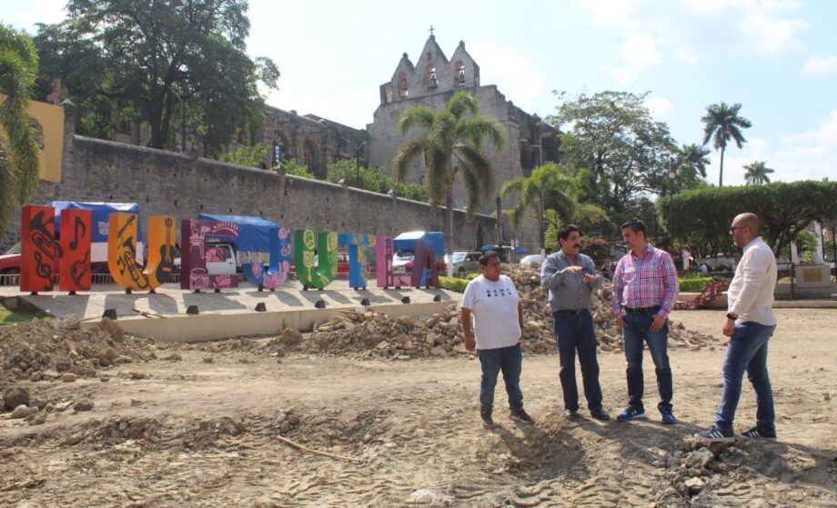 Tras recorrer la también llamada Plaza del Reloj, donde ya se retiró el adoquín y se revisaron niveles y cimentación, el edil mencionó que la colocación de las placas que darán vida a esta obra iniciará en los próximos días, con la meta de completarla a más tardar en la primera quincena de mayo.