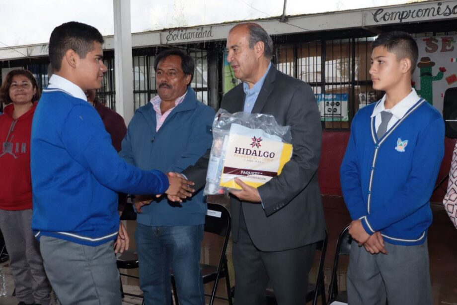 En la escuela Telesecundaria 57 se entregaron paquetes escolares, zapatos, uniformes y material tecnológico por un monto de 114 mil 407 pesos. Durante su mensaje, Castrejón Valdez reiteró que estas acciones del Instituto Hidalguense de Educación (IHE) responden al compromiso del gobernador Julio Menchaca Salazar de garantizar que niñas, niños y adolescentes accedan, permanezcan y concluyan exitosamente sus estudios.