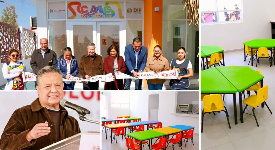 El gobernador de Hidalgo, Julio Menchaca Salazar, junto con la presidenta del Sistema DIF nacional, Rocío García Pérez, y su homóloga estatal, Edda Vite Ramos, inauguró los Centros de Atención Integral Infantil Comunitarios (CAIC) Colinas del Sur y Bomberos, en Pachuca.
