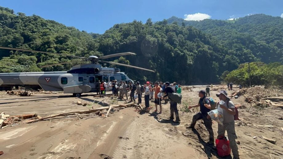 A través de un puente aéreo integrado por dos helicópteros del gobierno del estado, dos de la Secretaría de la Defensa Nacional (Sedena), uno de la Secretaría de Marina (Semar) y aeronaves particulares, se han trasladado enseres, víveres, agua potable y medicamentos hacia las zonas más afectadas.