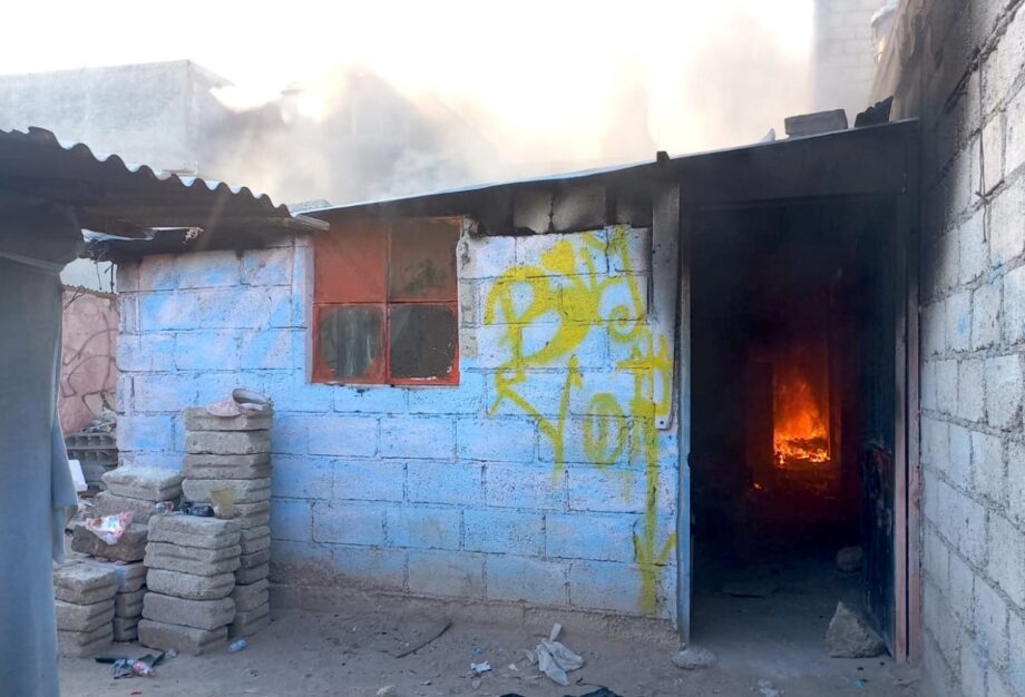 En el predio, ubicado en la intersección de las calles de Epazoyucan y Solidaridad, fueron consumidos enseres domésticos y material de reciclaje, además de presentarse afectaciones en la techumbre.