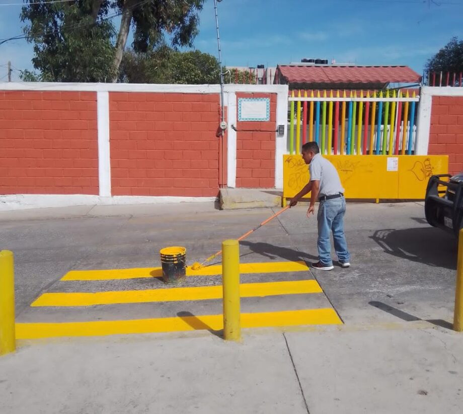 Derivado de una reunión realizada en el Jardín de niños ALFA, ubicado en la colonia Villa Aquiles Serdán, la Dirección de Tránsito y Vialidad de la Policía de Pachuca realizó la pinta de pasos peatonales y un tope.