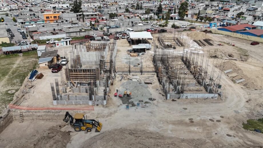 En Tizayuca, las autoridades constataron el avance de la construcción del CBTis No. 293, una obra que contará con 12 aulas didácticas, dos talleres, un laboratorio multifuncional y un aula de cómputo.