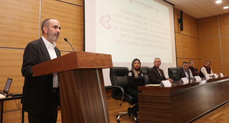 A través de la implementación de acciones estratégicas para la certificación del personal de la División de Investigación, 220 elementos de la Agencia de Investigación Criminal (AIC) de la Procuraduría General de Justicia del Estado de Hidalgo (PGJEH) obtuvieron su Certificado Único Policial, el cual avala que cuentan con los conocimientos, perfil, habilidades y aptitudes necesarias para el desarrollo de sus funciones.