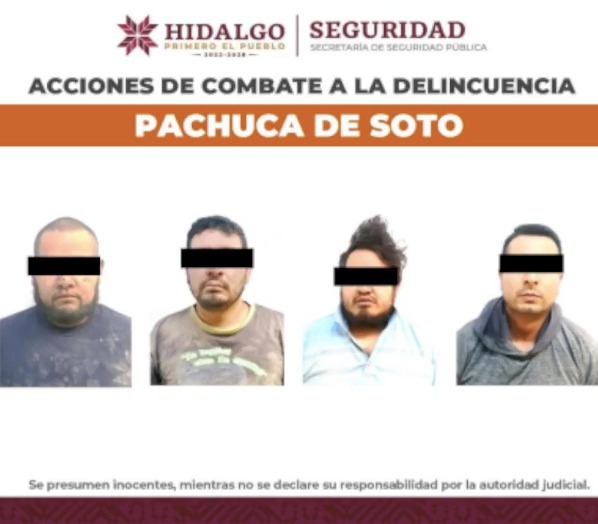 Al momento de la intervención se aseguraron cuatro hombres a bordo de una camioneta Ford Escape, color negro, con placas del estado de San Luis Potosí, así como una arma corta y cartuchos de diferentes calibres. De los cuatros detenidos, tres son originarios del estado de San Luis Potosí y uno más del Estado de México, quien reside en el municipio de Tizayuca.