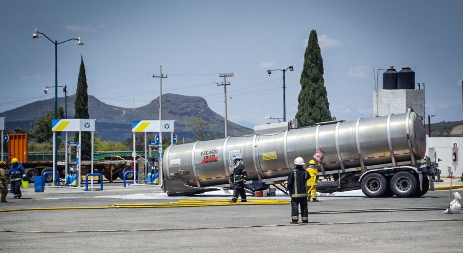 Una fuga de material peligroso (gasolina) en una estación de servicio moviliza a cuerpos de emergencia de los tres órdenes de gobierno. El área fue acordonada y se evacuó al personal como medida preventiva.
