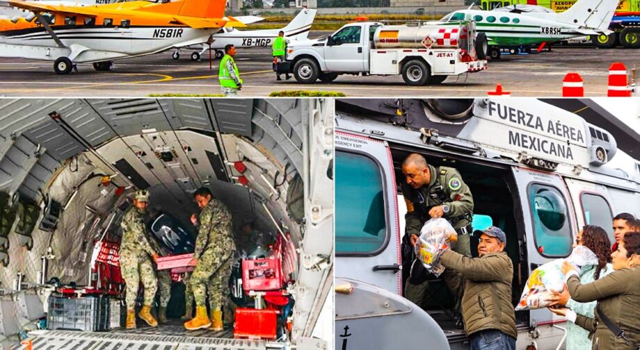 Despliegue aéreo entrega ayuda a municipios de Hidalgo afectados por lluvias