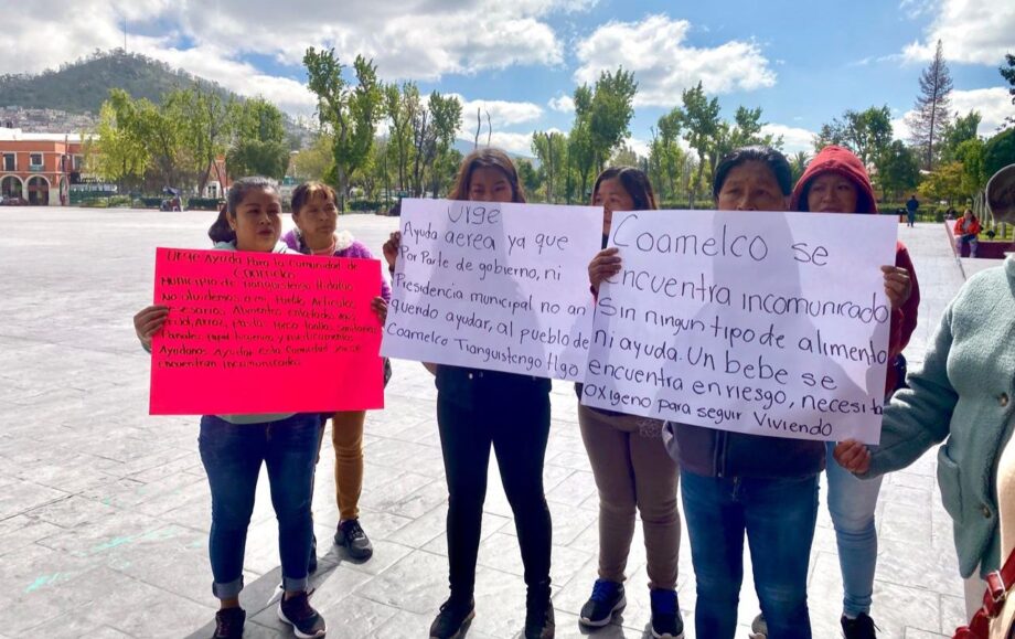 Un grupo de mujeres que tienen familiares en la comunidad de Coamelco, en Tianguistengo, acudió a Plaza Juárez para pedir apoyo urgente al gobernador Julio Menchaca. Solicitan ayuda para trasladar por vía aérea a un bebé que necesita oxígeno, así como víveres y medicamentos.