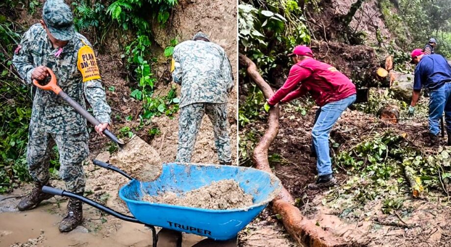 Con el apoyo de la Marina, el Ejército y el Gobierno de Hidalgo, avanzan los trabajos de rehabilitación de caminos, rescate de familias y distribución de víveres. Se reportan más de mil viviendas afectadas y 19 personas no localizadas.